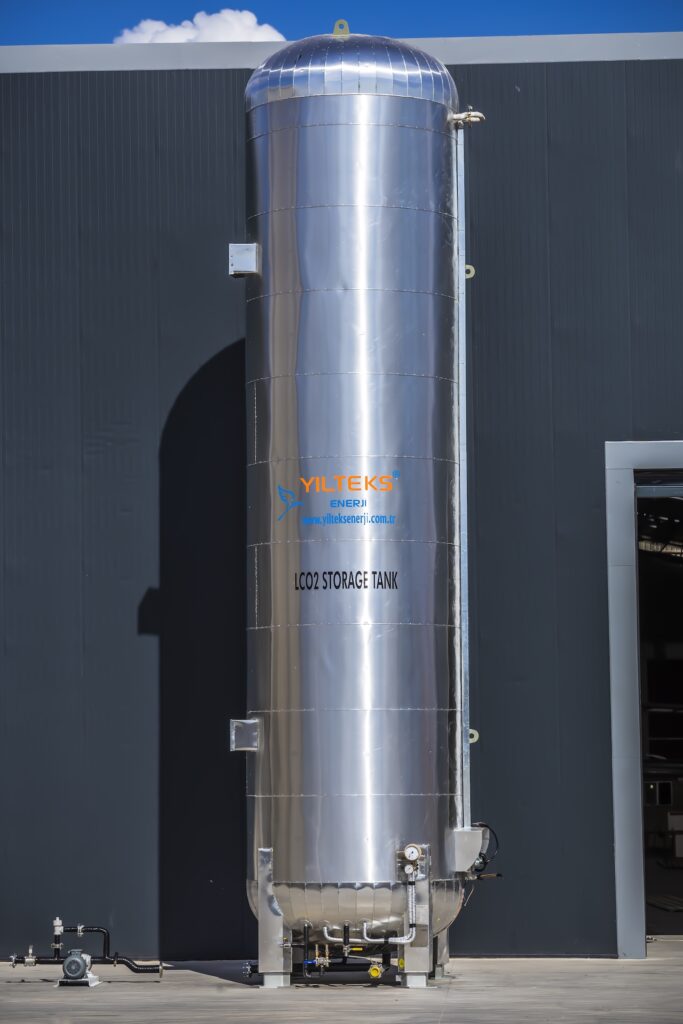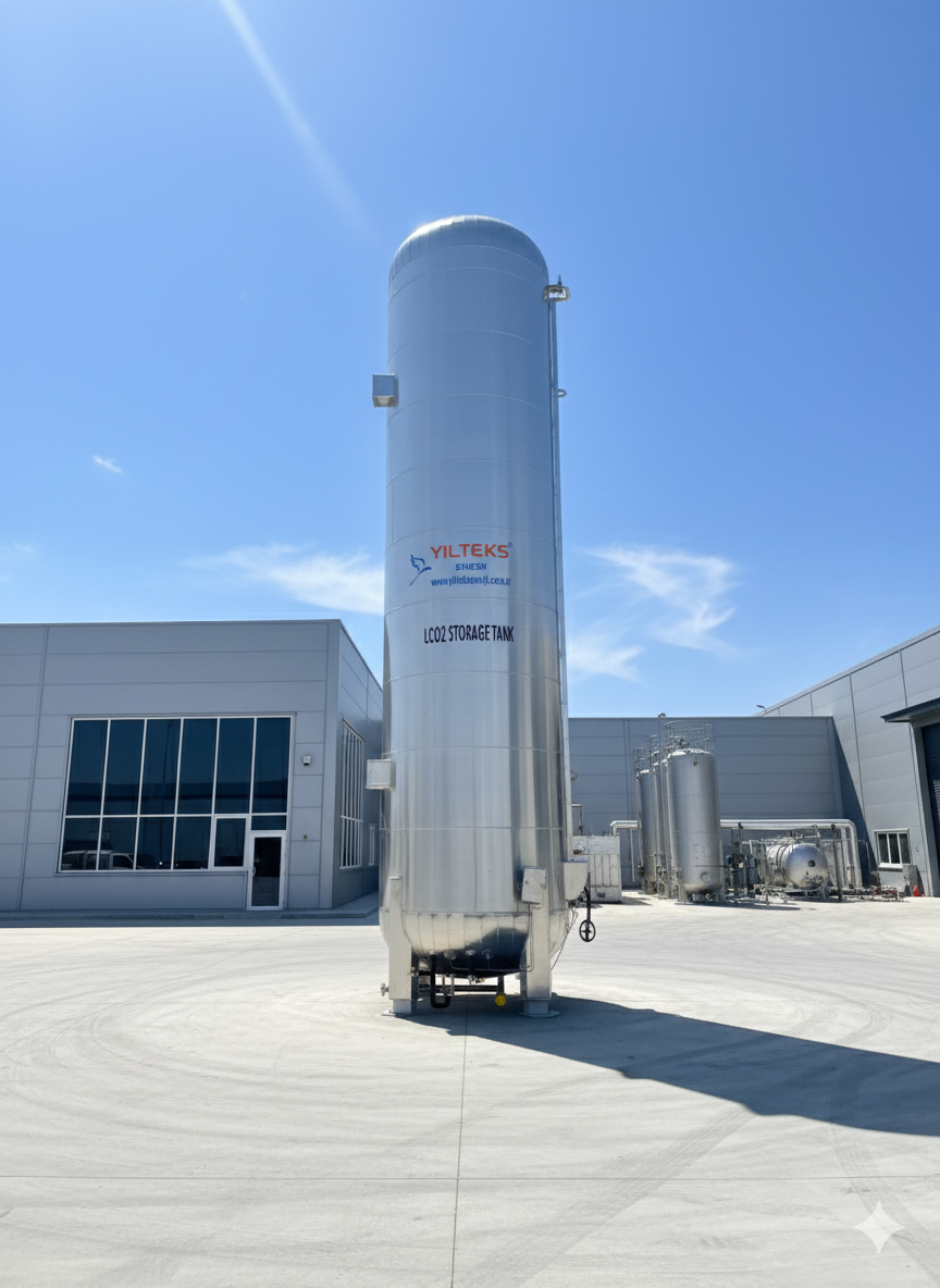 LCO₂ polyurethane-insulated storage tanks manufactured by Yılteks Energy are specially designed for the safe and efficient storage of liquefied carbon dioxide in fixed installations. Thanks to polyurethane foam insulation technology, low evaporation rates and high thermal insulation are achieved, while the system is designed to be durable, long-lasting, and maintenance-friendly. They are widely used by industrial gas producers, as well as in the beverage, welding, and chemical industries.